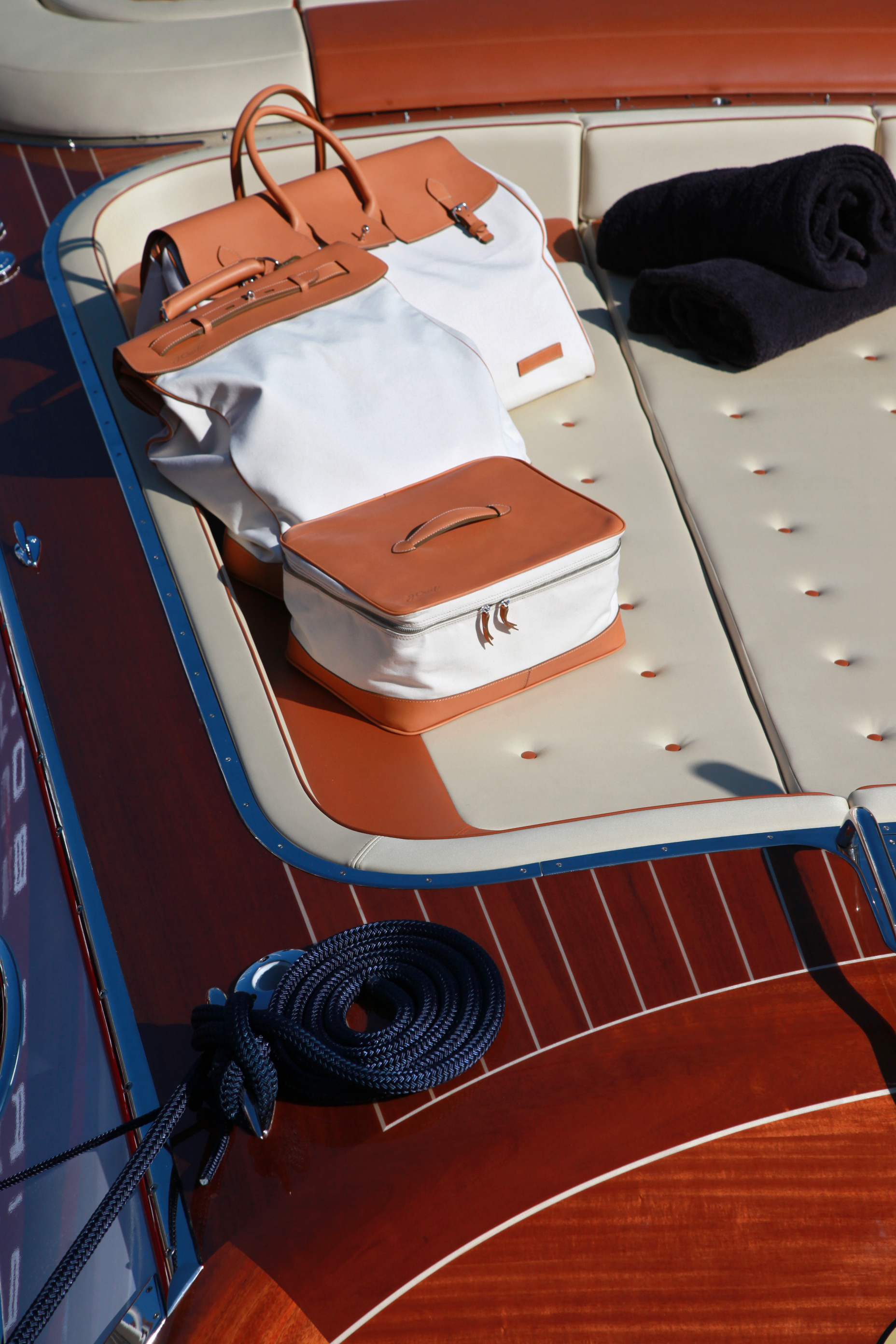 Consider what happens when customization becomes central: one owner commissions a Torpedo with metallic-finish hull, brass interior, and yellow-and-cream diamond-stitched upholstery. The next specifies traditional white gel coat matched to their superyacht, with Loro Piana interior fabrics. A third designs custom luggage to nestle perfectly within storage compartments, with leather matching the cockpit seating.