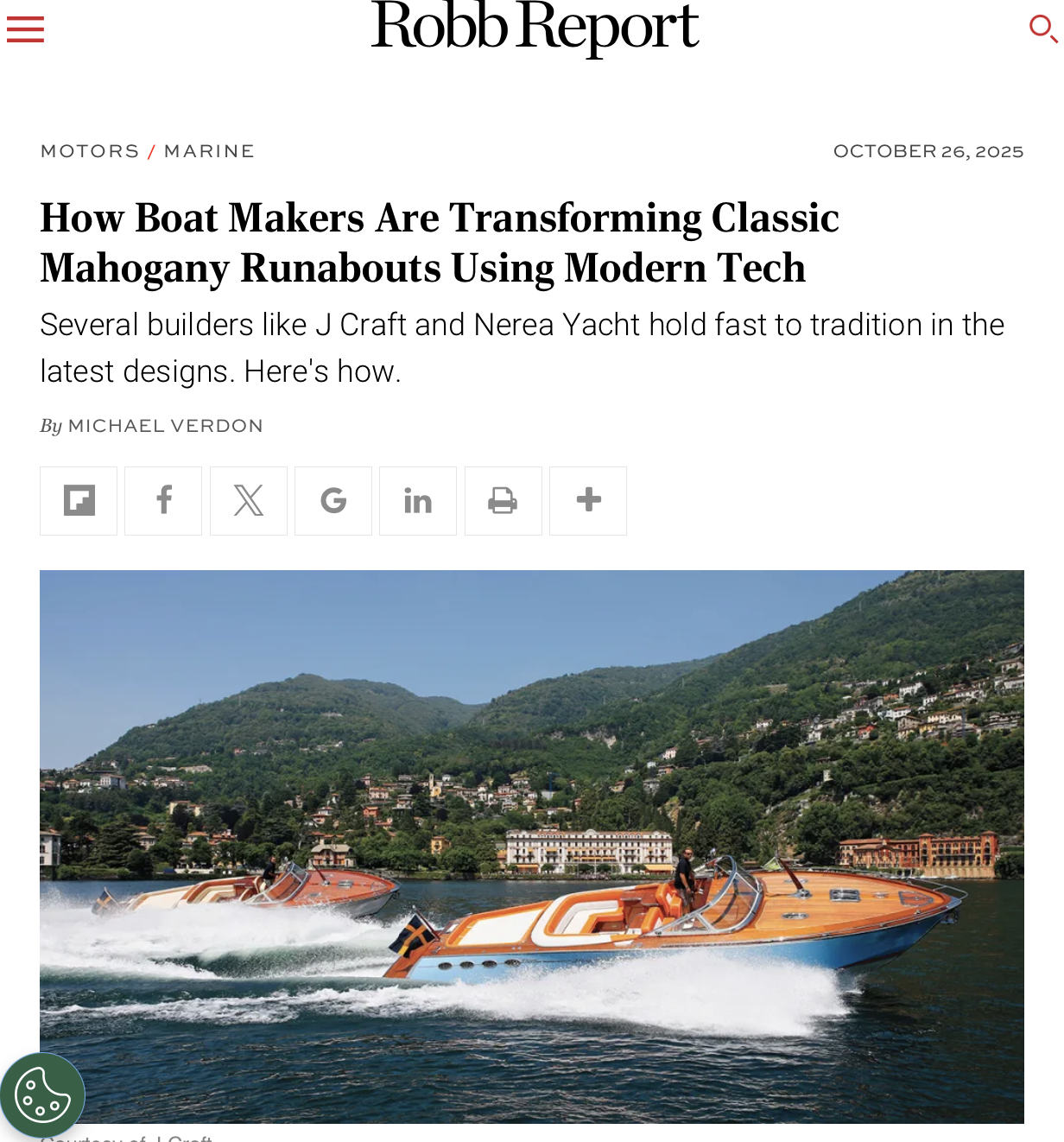 Robb Report, in its 2025 feature on how shipyards are future-proofing classic race boats and runabouts, highlighted J Craft as a builder successfully balancing timeless form with modern engineering.