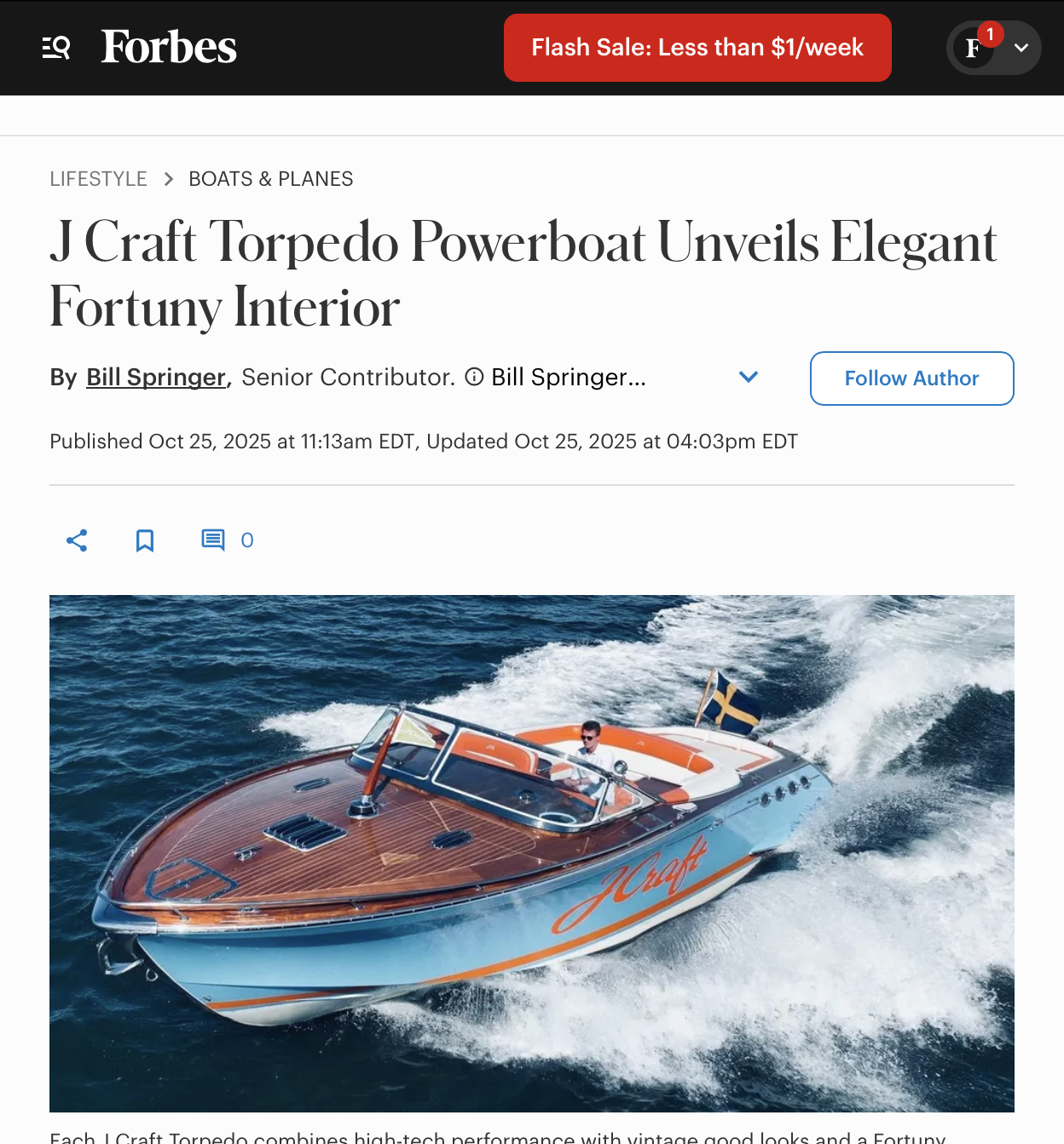 Forbes and Haute Living, in the context of our Fortuny collaboration, positioned J Craft within a wider cultural conversation where craftsmanship, design, and legacy extend beyond yachting alone.